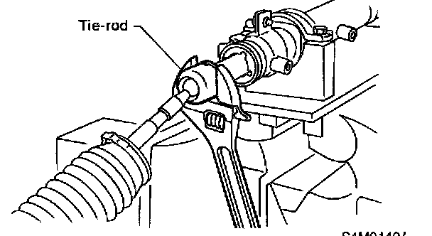 9) Using a wrench [32 mm (1.26 inch) width across flats] or adjustable wrench, remove the tie-rod.