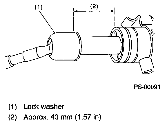 30) If the tie-rod end was removed, screw in the lock nut and tie-rod end to screwed portion of tie-rod, and then tighten the lock nut temporarily in a position as shown in the figure.