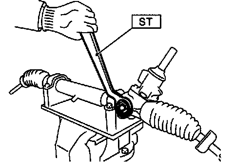 7) Insert the rack assembly into rack housing from cylinder side, and then remove the ST after it has passed completely through oil seal.