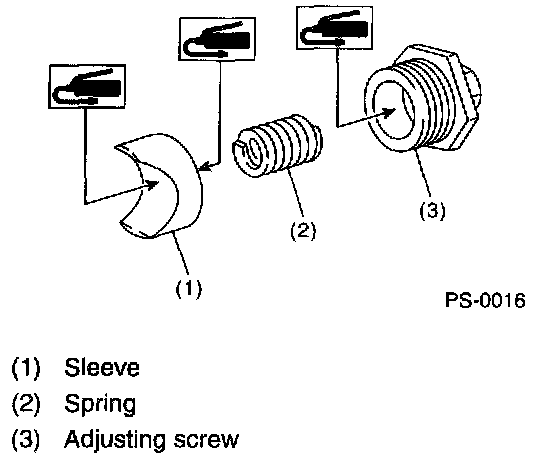 5) Loosen the adjusting screw, and then remove the spring and sleeve.