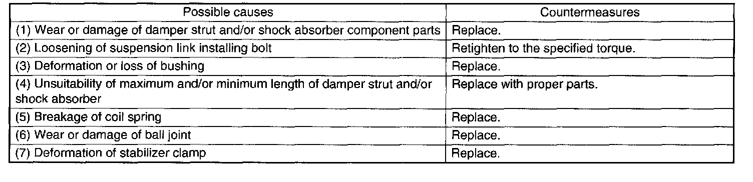 IMPROPER VEHICLE POSTURE OR IMPROPER WHEEL ARCH HEIGHT
