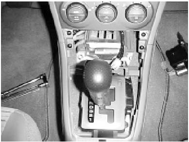 3) Remove and set aside the shifter console cover after disconnecting the cigarette lighter wiring connector. Be careful not to scratch or damage the console cover or console box.
