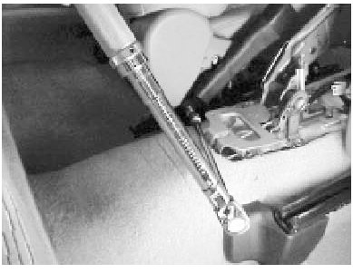 10) Remove the inner seatbelt buckle bolt (14 mm Hex).
