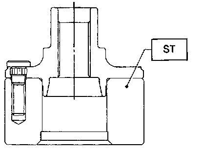 6. Using the ST1 and ST2, press the outer oil seal until it contacts the bottom of housing.