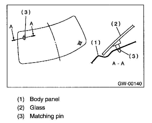 NOTE: A matching pin is cemented to corners of the glass on the compartment side. Use a piano wire when cutting each pin.