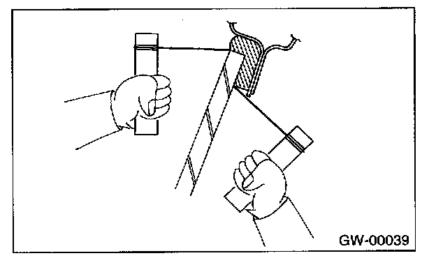 6. While holding the knife edge and windshield glass edge at a right angle, move the windshield knife in parallel to the windshield glass edge along face and edge of windshield glass to cut the adhesive layer.