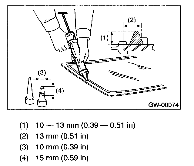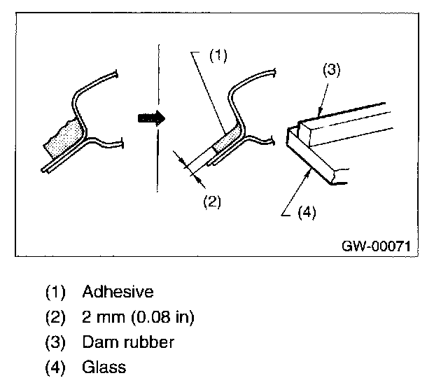 NOTE: For minimum drying time and time the vehicle must be left standing before driving after bonding, follow instructions or instruction manual from the adhesive manufacturer.