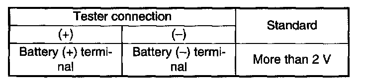 Measure the voltage between the battery (+) terminal and (-) terminal.