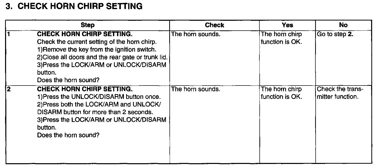 Check Horn Chirp Setting