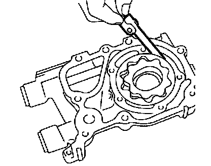 Measure the clearance between the outer rotor and oil pump rotor housing. If clearance exceeds the limit, replace the rotor.