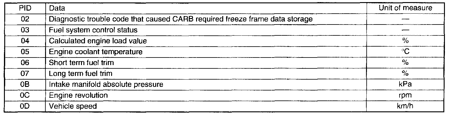 MODE $02 (POWER TRAIN FREEZE FRAME DATA)