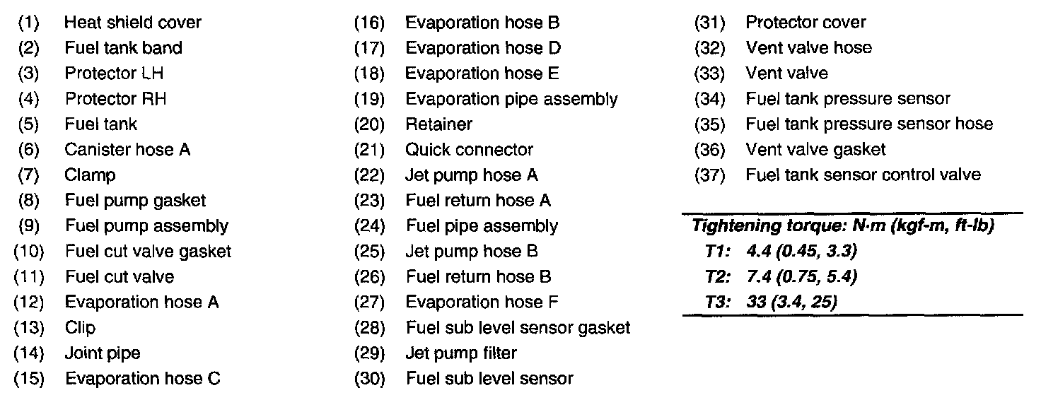 Tightening torque: 4.4 N.m (0.45 kgf-m, 3.3 ft-lb)