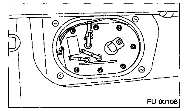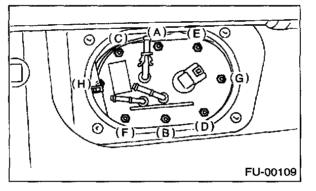 12. Remove the nuts which install the fuel pump assembly onto the fuel tank.