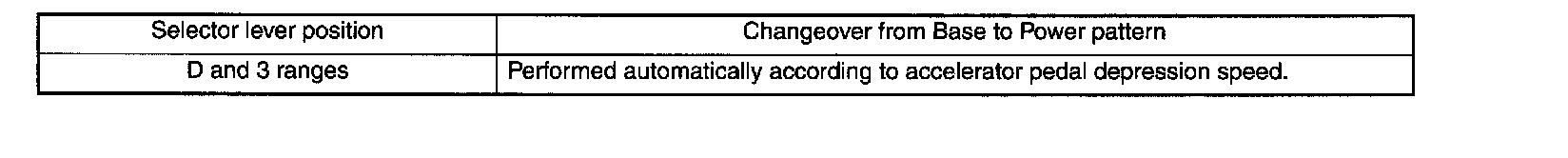 The TCM changes its gear shift control pattern automatically between the Base pattern suitable for ordinary economy driving and the Power pattern suitable for climbing uphill or rapid acceleration.