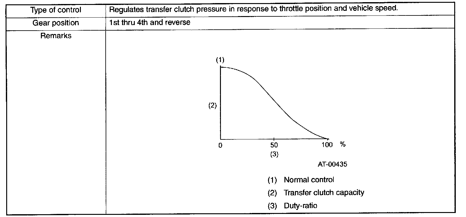 ^ The transfer duty solenoid is controlled by the TCM. The TCM changes the solenoid controlling duty ratio according to driving conditions.