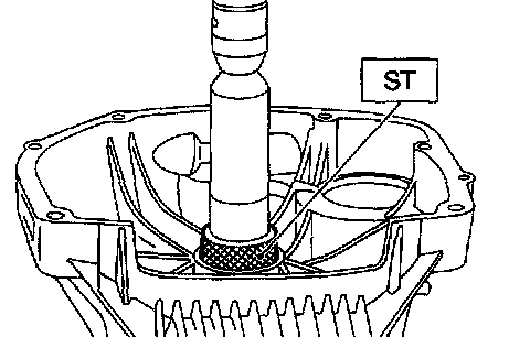 2) Force-fit the oil seal to the torque converter clutch case with ST.