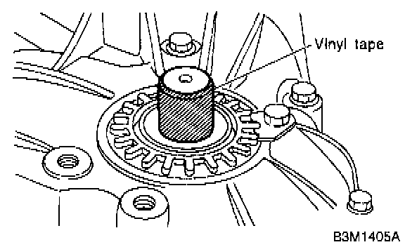 6) Put the vinyl tape around splines of the right and left axle drive shafts to prevent damage to oil seal.