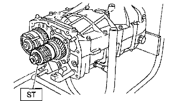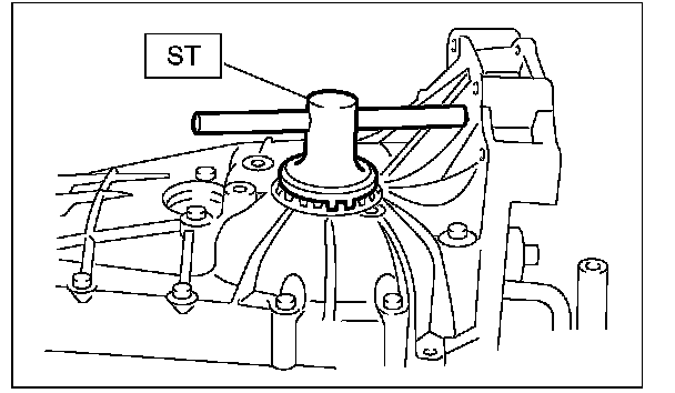 9) Place the transmission with case left side facing downward and put ST1 on bearing cup.