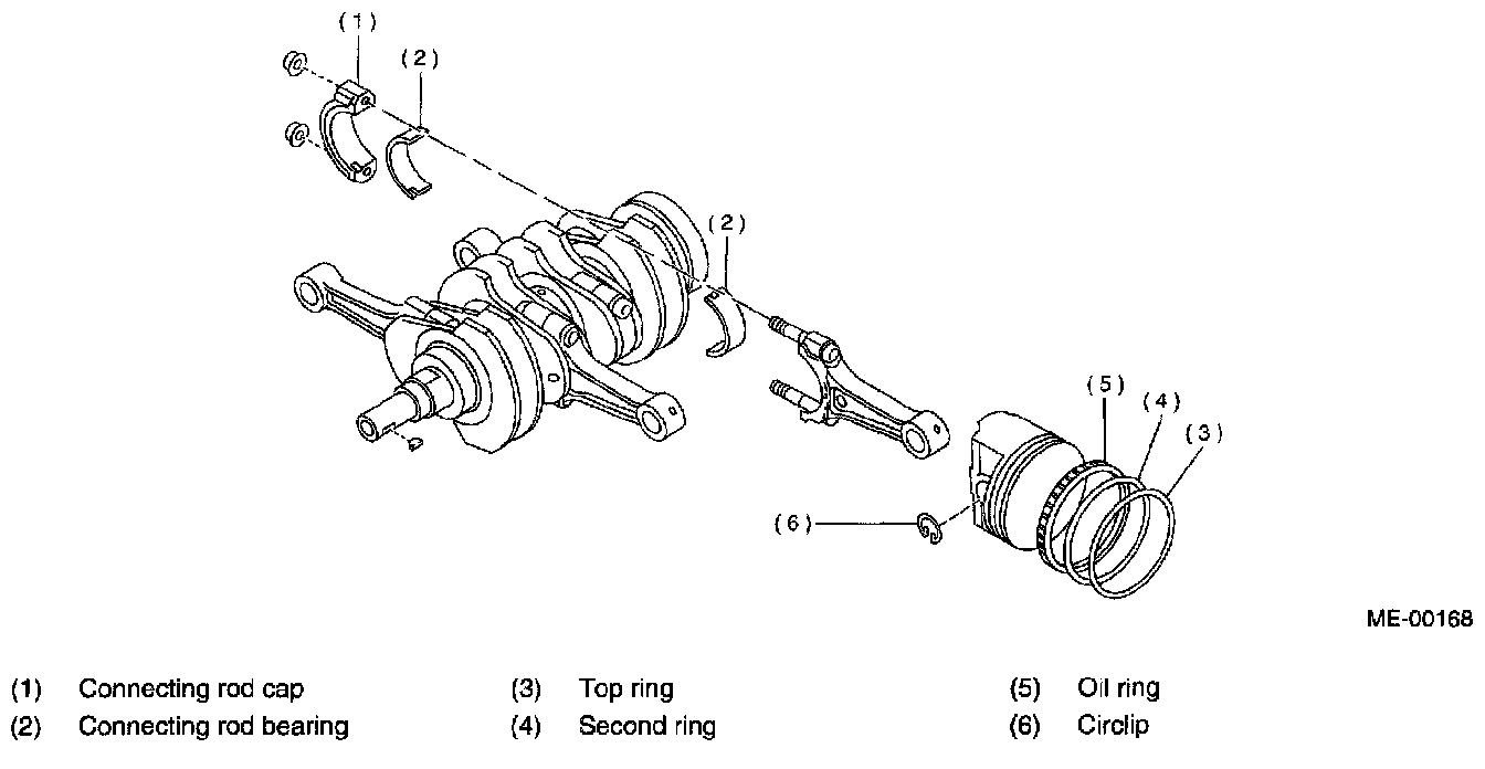 CAUTION: Arrange the removed connecting rod, connecting rod cap and bearing in order to prevent confusion.