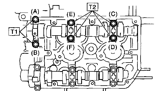 Camshaft bolts (tighten in alphabetical sequence in two stages).