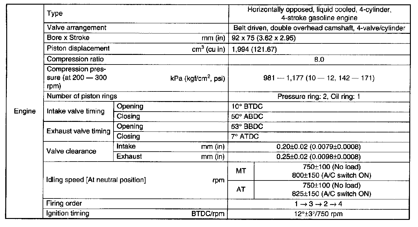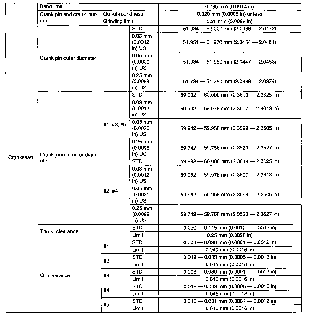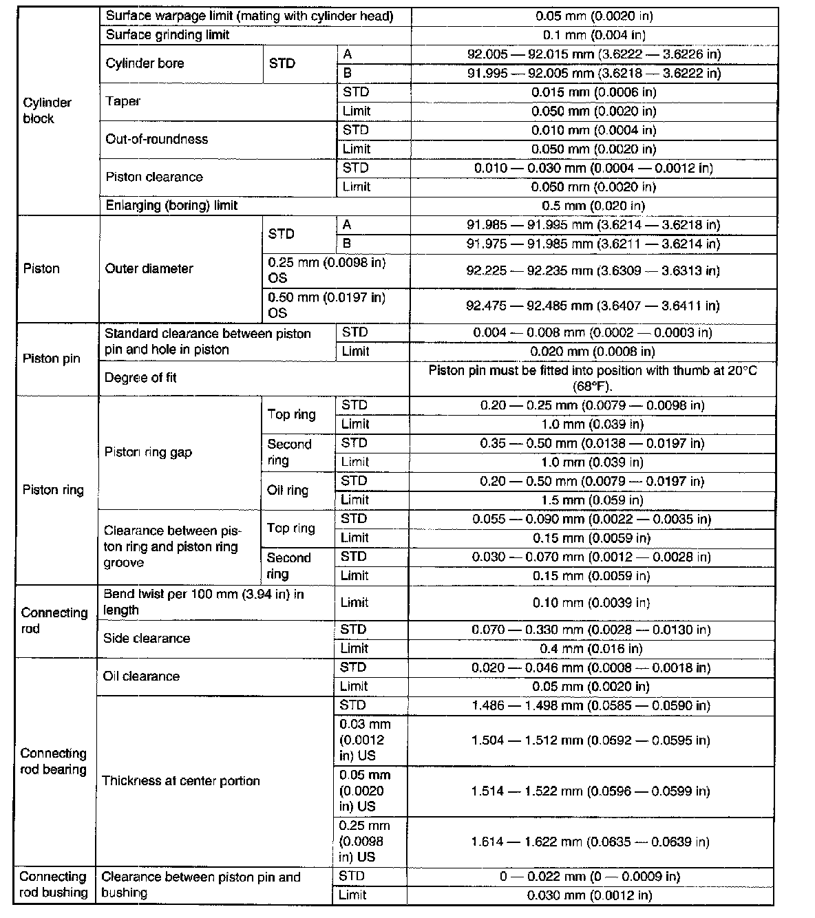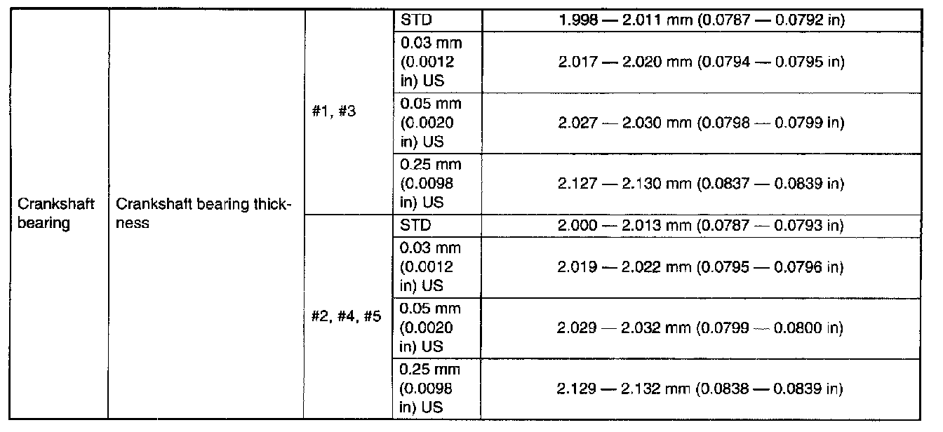 SPECIFICATIONSNOTE: STD: Standard I.D.: Inner Diameter O.D.: Outer Diameter OS: Oversize US: Undersize
