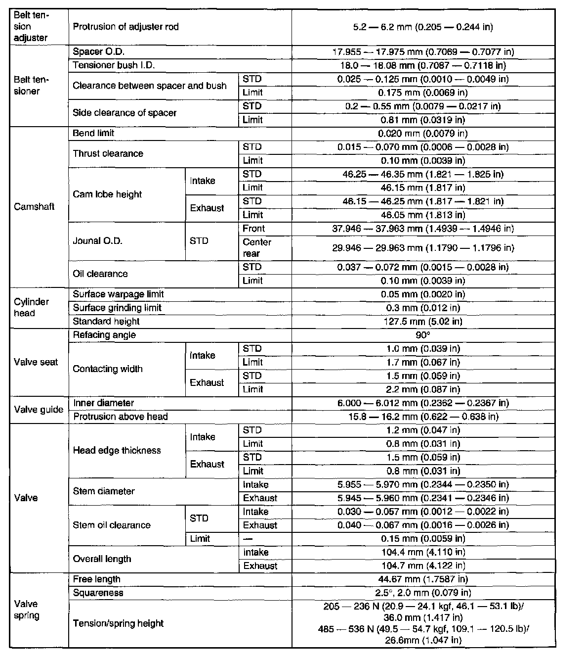 Camshaft Sprocket bolt 98 Nm (10 kgf-m, 72.4 ft. lbs.)