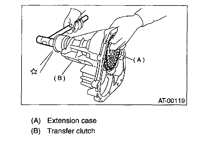 1) Take out the transfer clutch by lightly tapping the end of the rear drive shaft.
