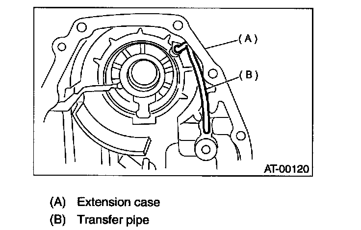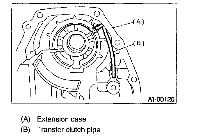 3) Install the transfer clutch pipe to extension case without bending pipe.