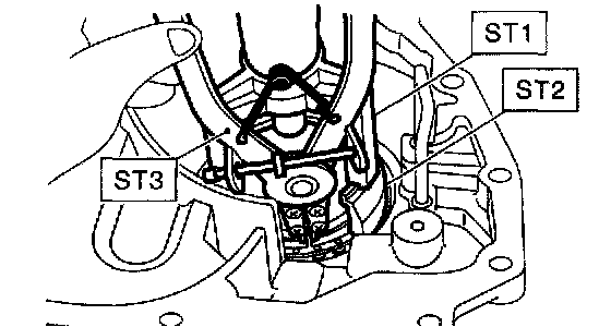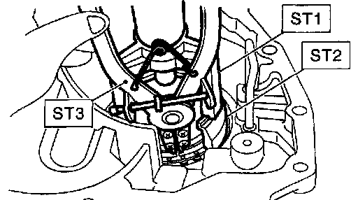 1) Using ST1, ST2, ST3 and a press`, remove snap ring.
