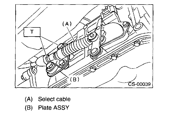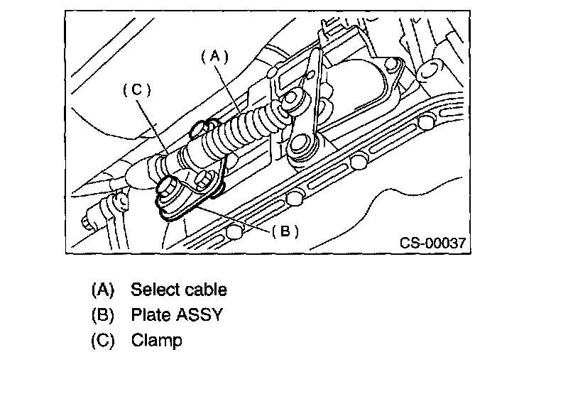 10) Disconnect the cable from select lever and then remove the cable bracket.