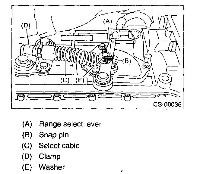 4) Install the washer and snap pin to range select lever.