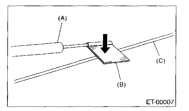 NOTE: When checking continuity, wind a piece of tin foil around the tip of the tester probe (A) and press the foil (B) against the wire (C) with your finger.