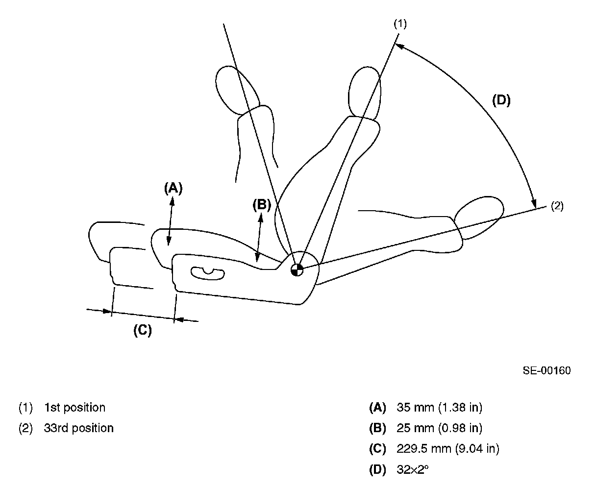 - The height of each headrest is adjustable to any of the 4 positions available at 18 mm (0.71 in) steps.