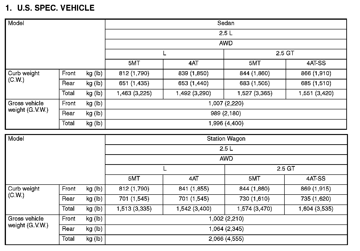 Weight (U.S Spec Vehicle):