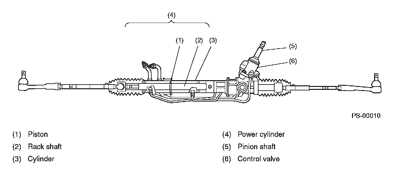 The gearbox integrates the control valve and power cylinder into a single unit. The rack shaft serves as a power cylinder piston. The rotary control valve is located around the pinion shaft.