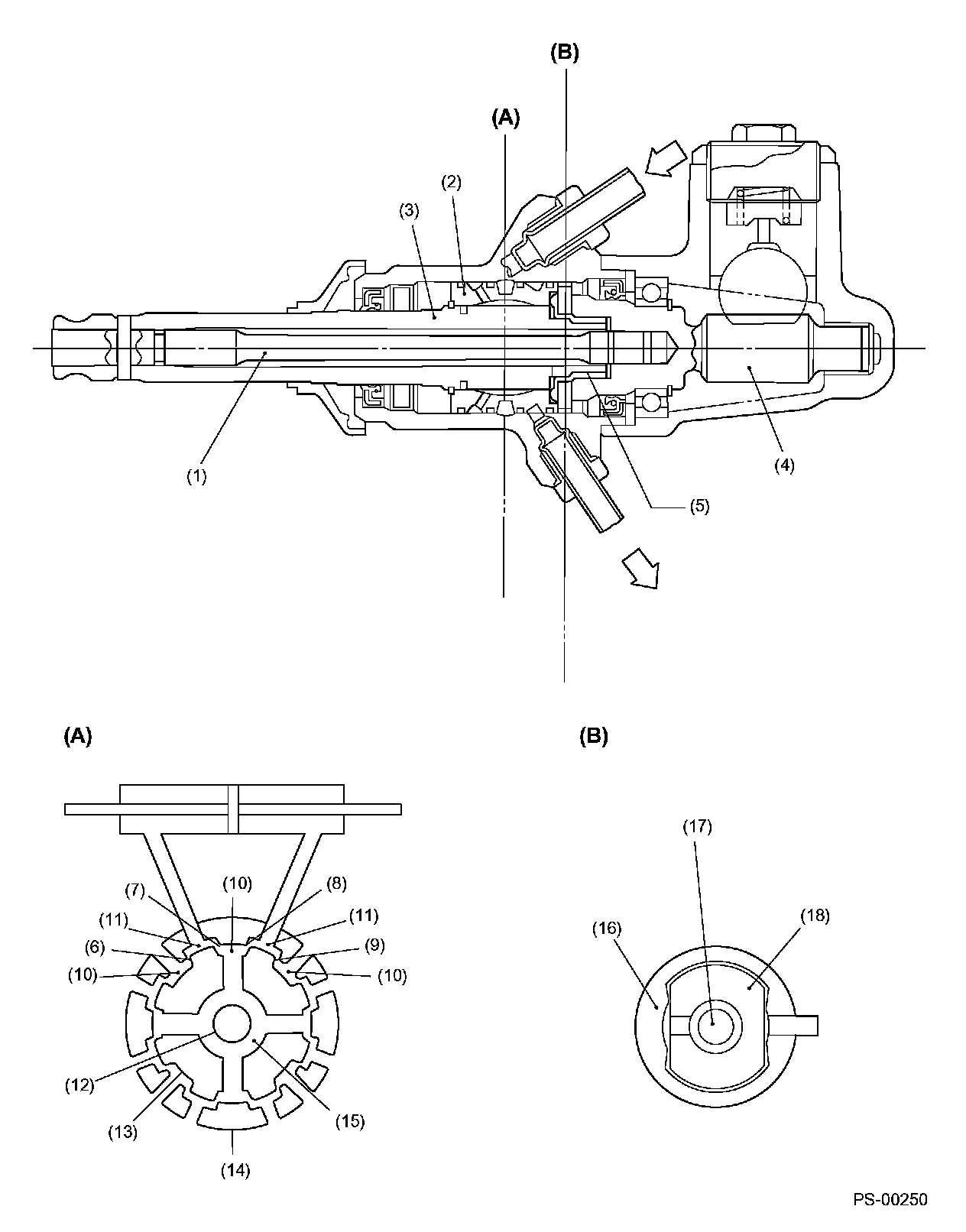 The pinion is in mesh with the rotor with adequate clearance, which enable the rack to be moved manually by rotating the steering shaft (fail-safe feature).