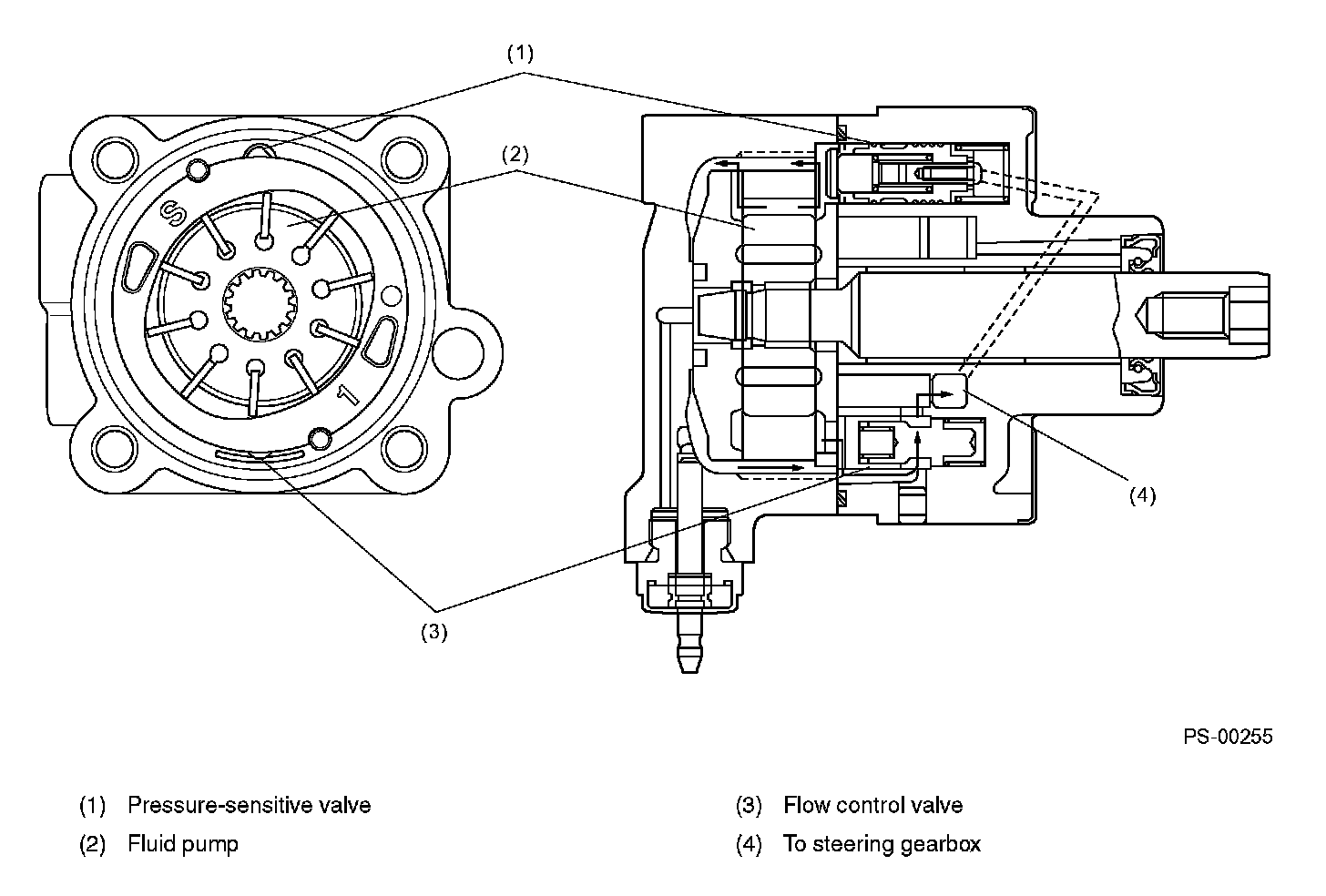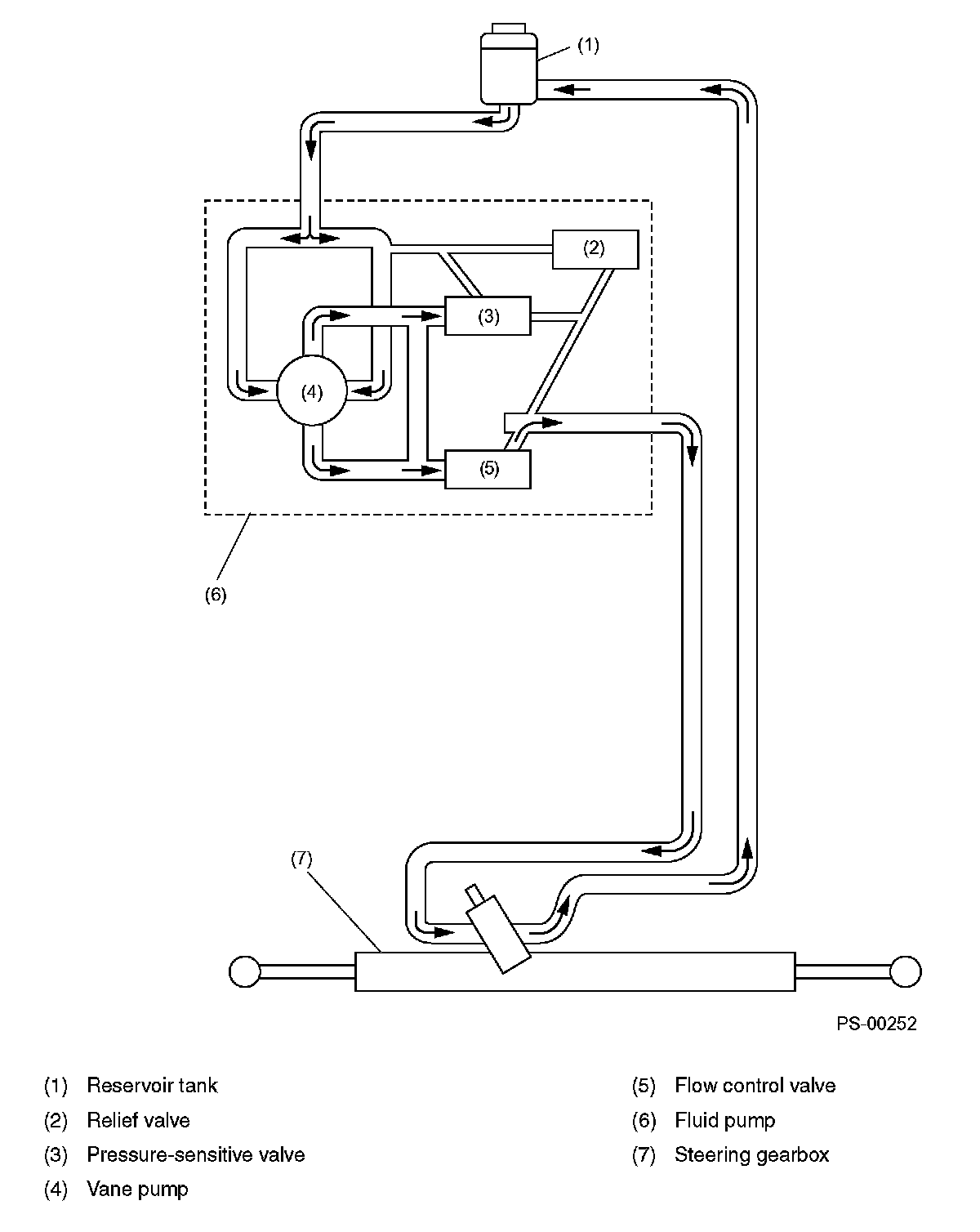 - The pressure-sensitive valve returns the fluid to the reservoir tank when there is no steering input.