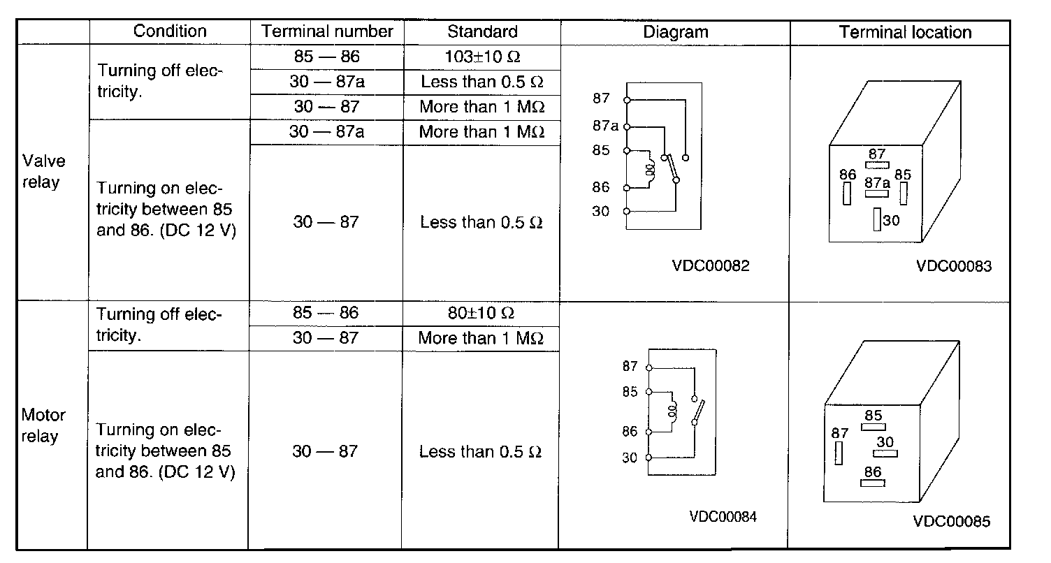 2. Check valve relay and motor relay for discontinuity or short circuits.
