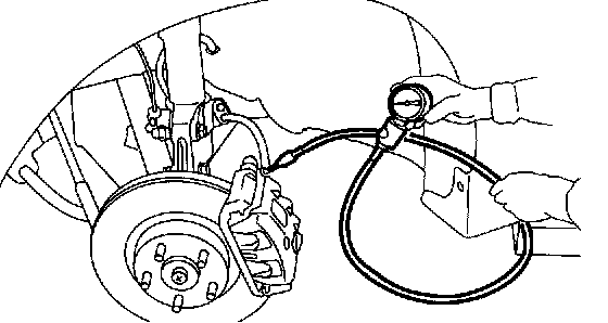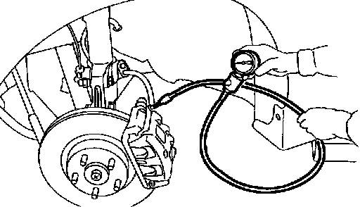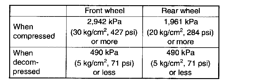 7. Read values indicated on the pressure gauge and check if the fluctuation of the values between decompression and compression meets the standard values. Also check if any irregular brake pedal tightness is felt.