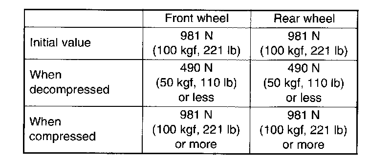6. Read values indicated on the brake tester and check if the fluctuation of values, when decompressed and compressed, meet the standard values.