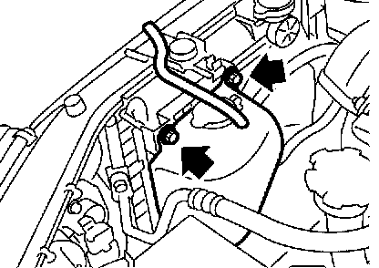 2. Remove bolts which install reservoir tank onto radiator main fan shroud.