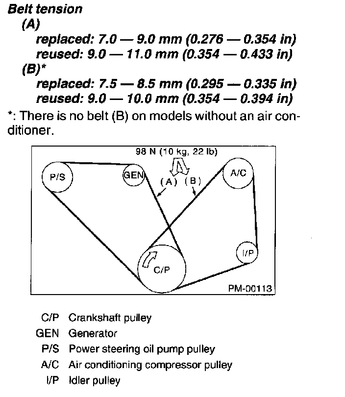 tension and adjust it if necessary by changing generator installing position and or idler pulley installing position.
