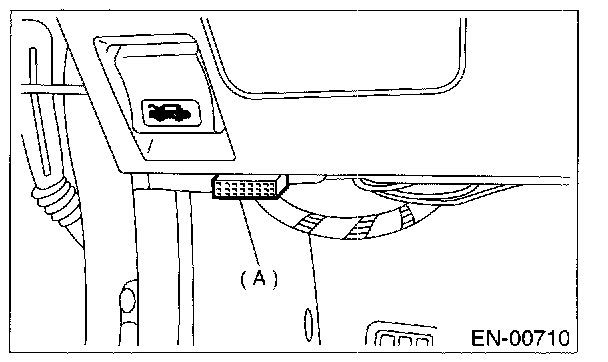 2. Open the cover and connect the OBD-II general scan tool to the data link connector (A) located in the lower portion of the instrument panel (on the driver's side).