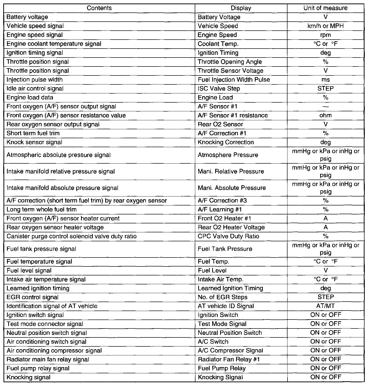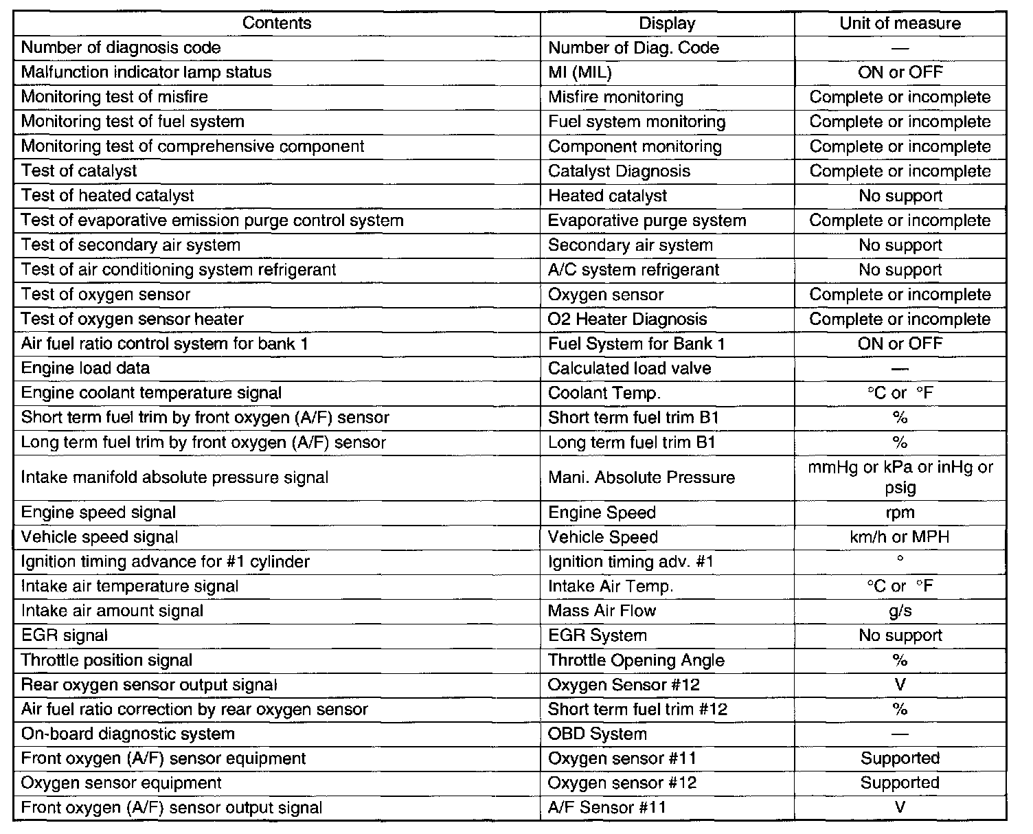 READ CURRENT DATA FOR ENGINE. (OBD MODE)