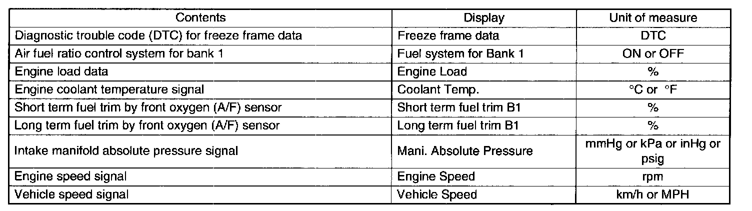 READ FREEZE FRAME DATA FOR ENGINE. (OBD MODE)