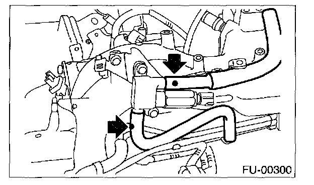 2. Disconnect connector from air assist injector solenoid valve and disconnect air by-pass hoses.