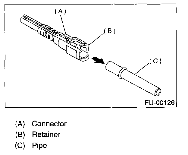 3. Pull out connector (A) from retainer (B).