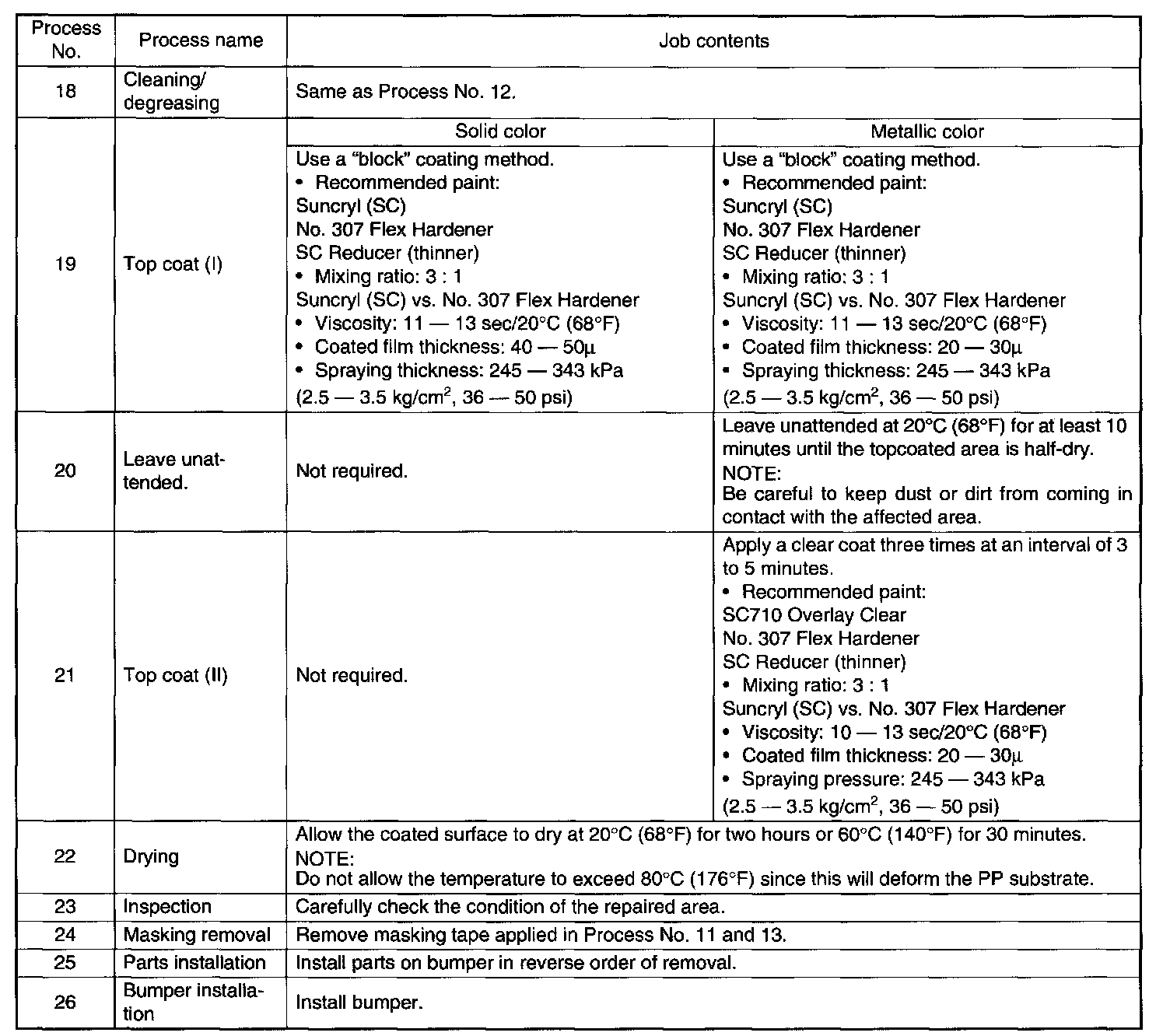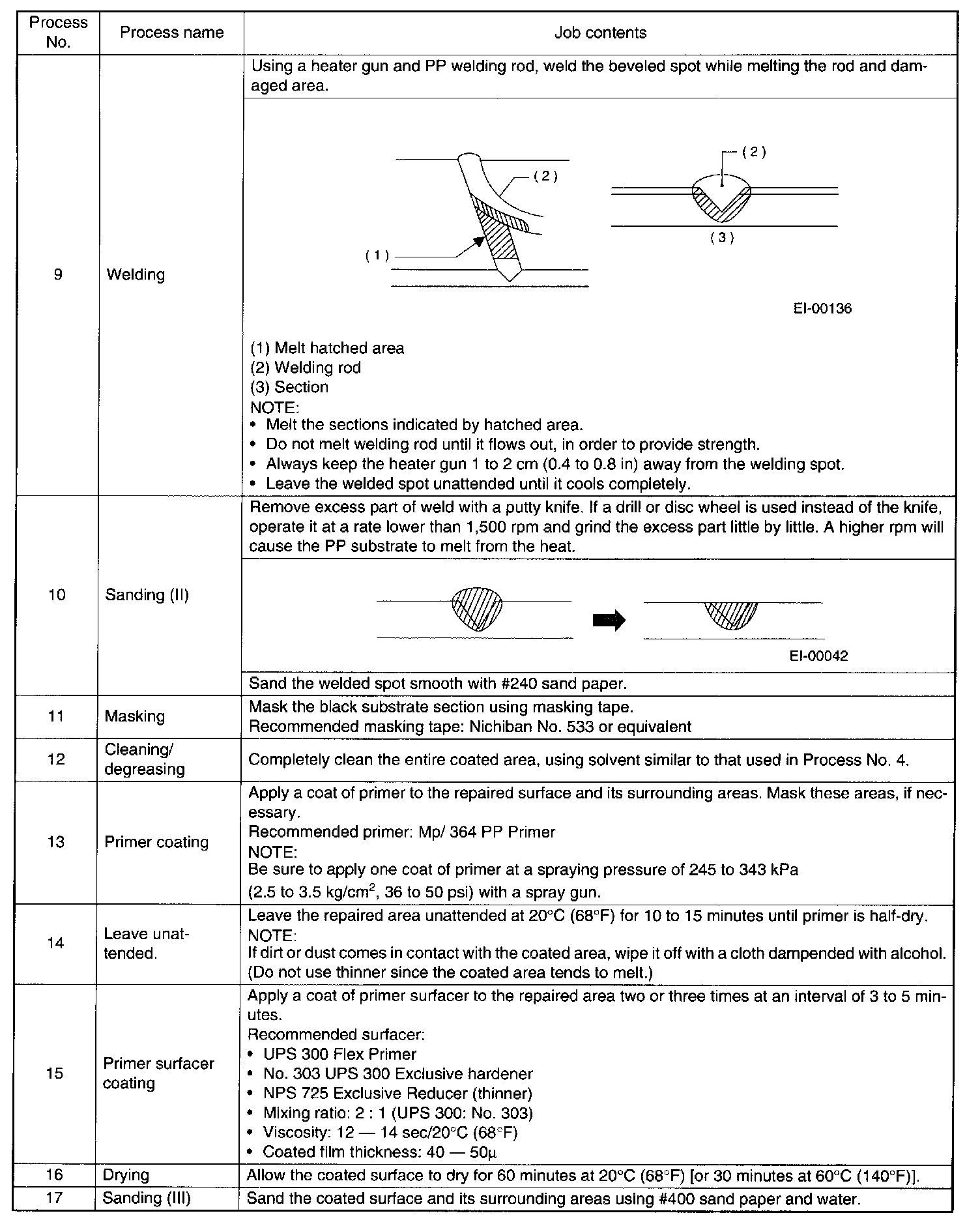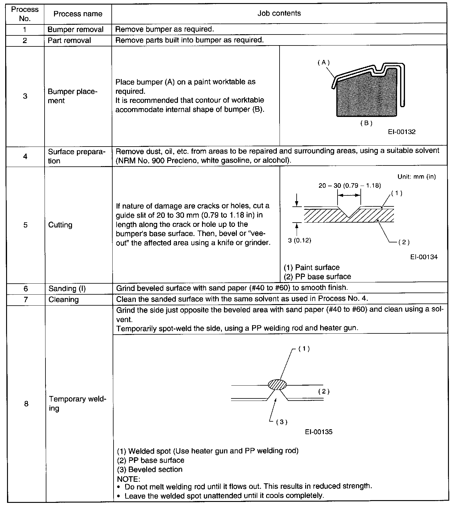 2. REPAIR INSTRUCTIONS FOR COLORED PP BUMPER