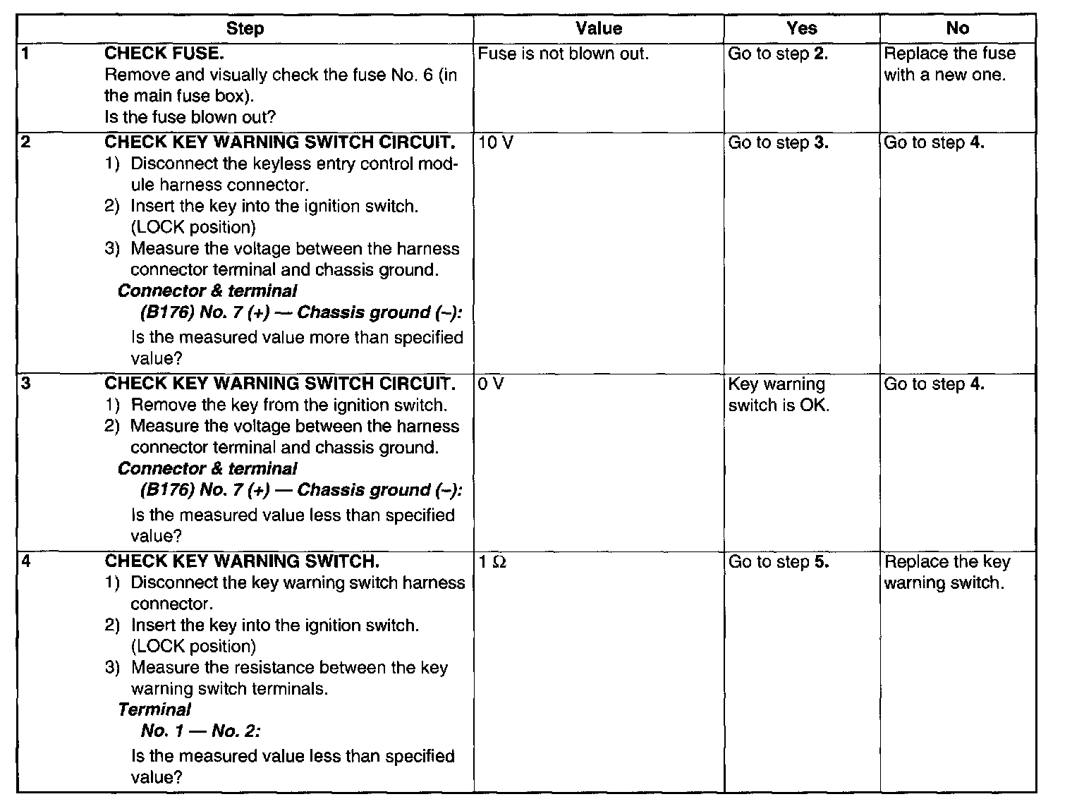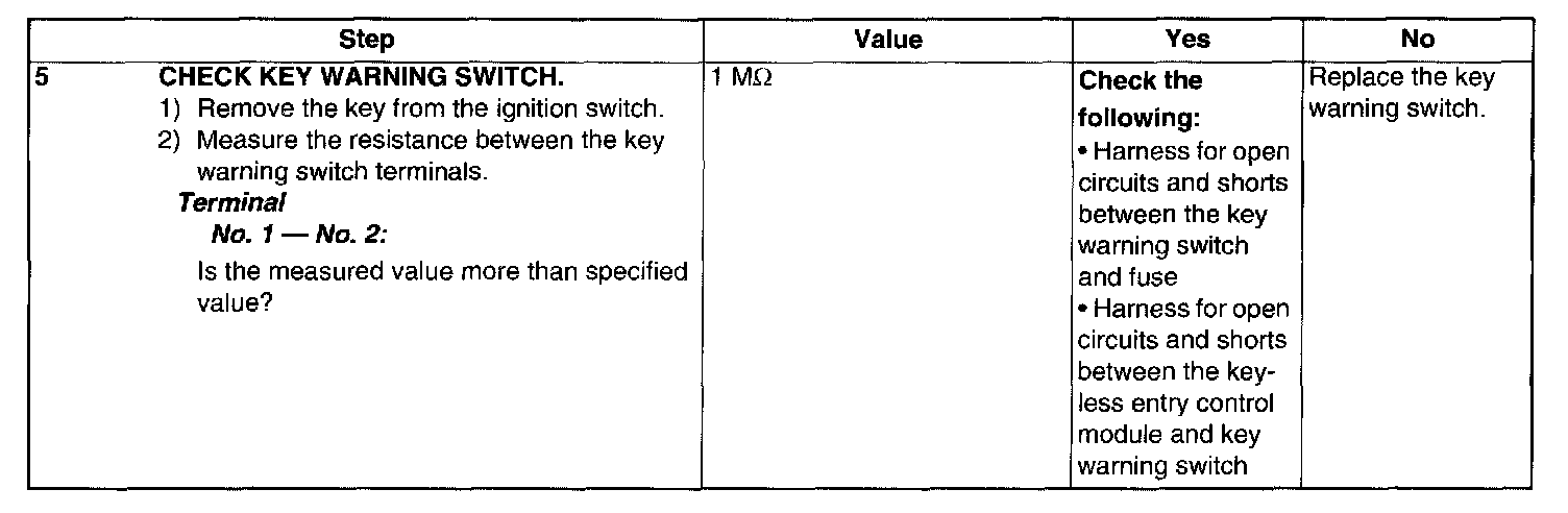 Check Key Warning Switch