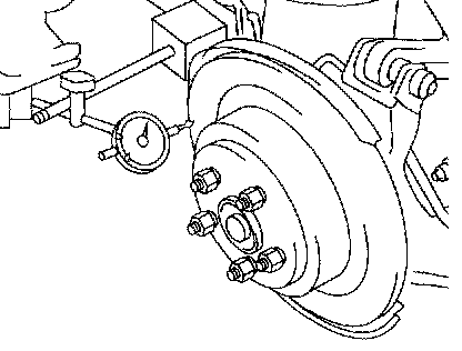 2. Set a dial gauge on the disc rotor. Turn disc rotor to check runout.